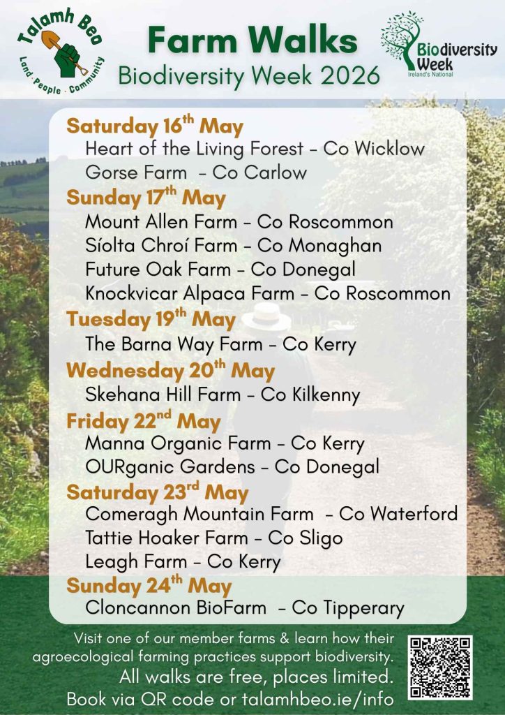Join us for a very exciting line up of free 14 Farm Walks for National Biodiversity Week 2026 which takes place all across the country from 15th-24th May.  Book any walk via Eventbrite here.